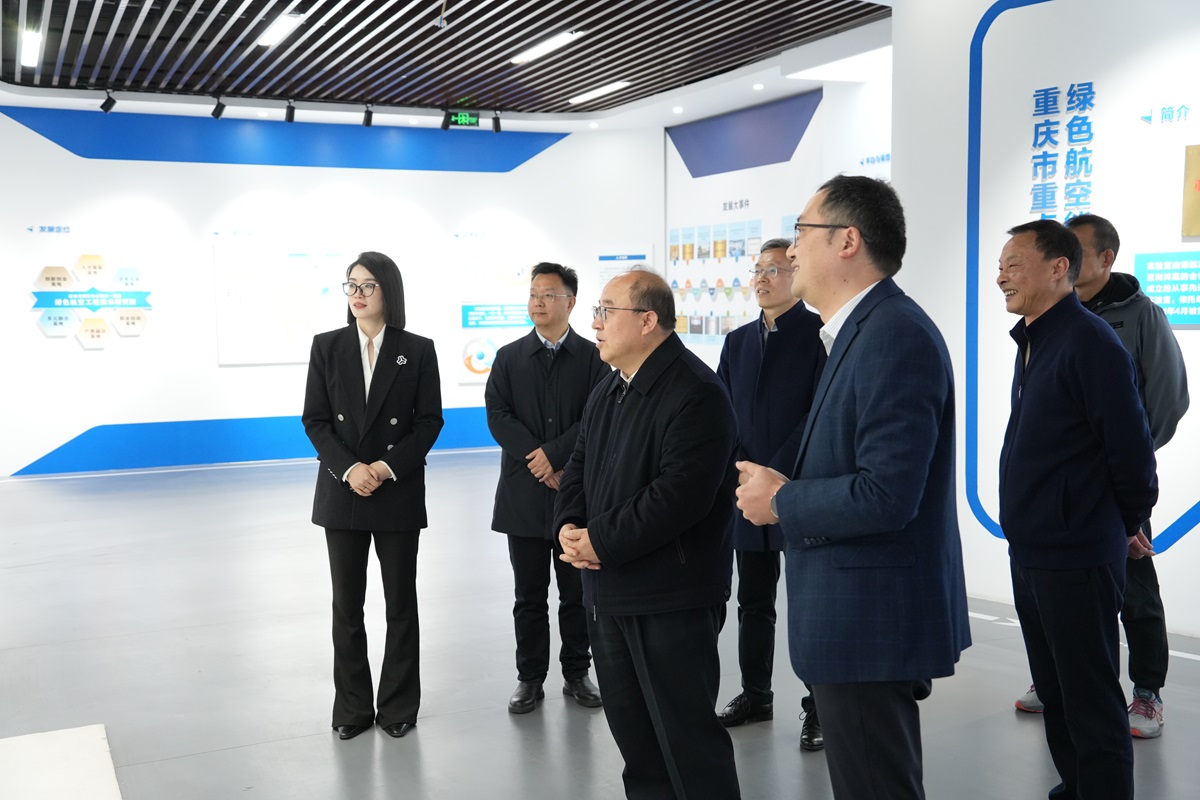 在重庆交通大学绿色航空技术研究院,宫辉一行看望慰问了研究院副院长、2025年度全国三八红旗手获得者曾宪君,向她送上节日的祝贺与问候。宫辉实地参观了研究院成果展馆,详细了解绿航院在无人机系列产品研发、产学研合作推进、科技成果转化等方面的整体进展与创新成效。